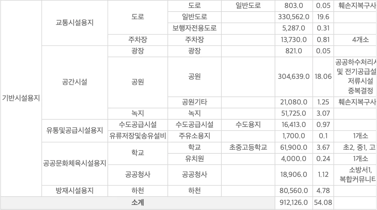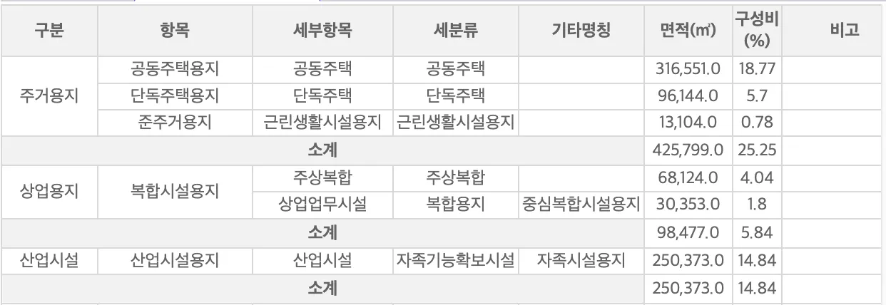 주거용지 | 상업용지 | 산업시설 | 기반시설 | |