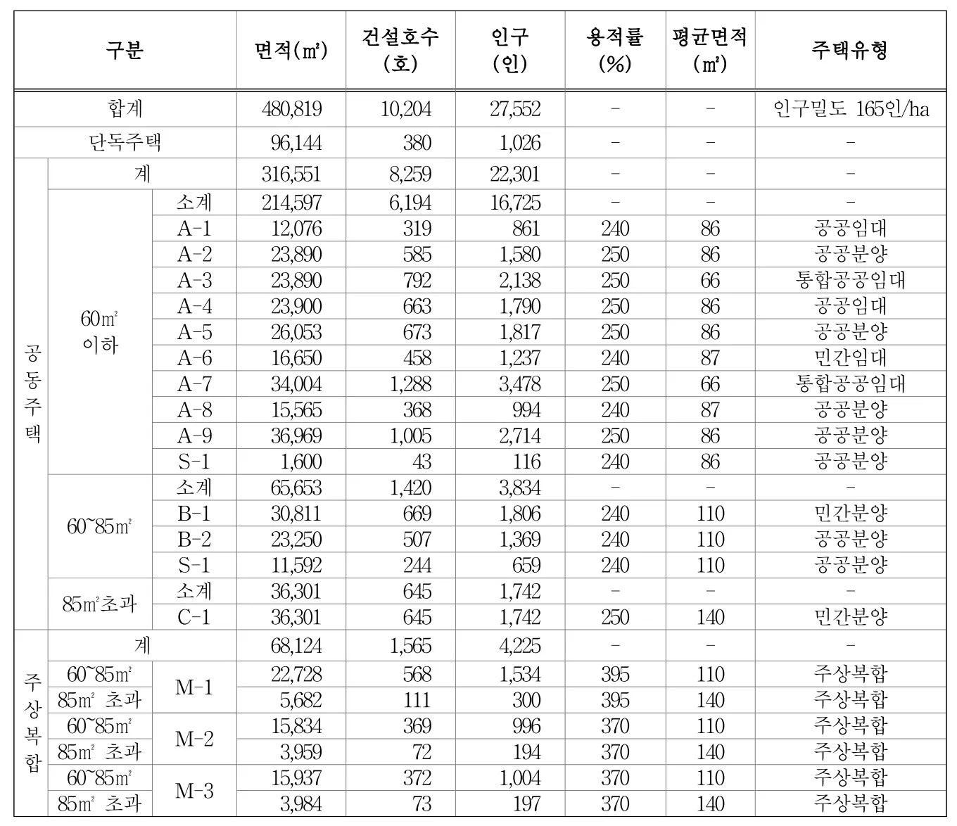 건설 호수는 10,204호로 단독주택 380호, 공동주택 8,295호, 주상복합 1,565호가 예정 되어있어요.